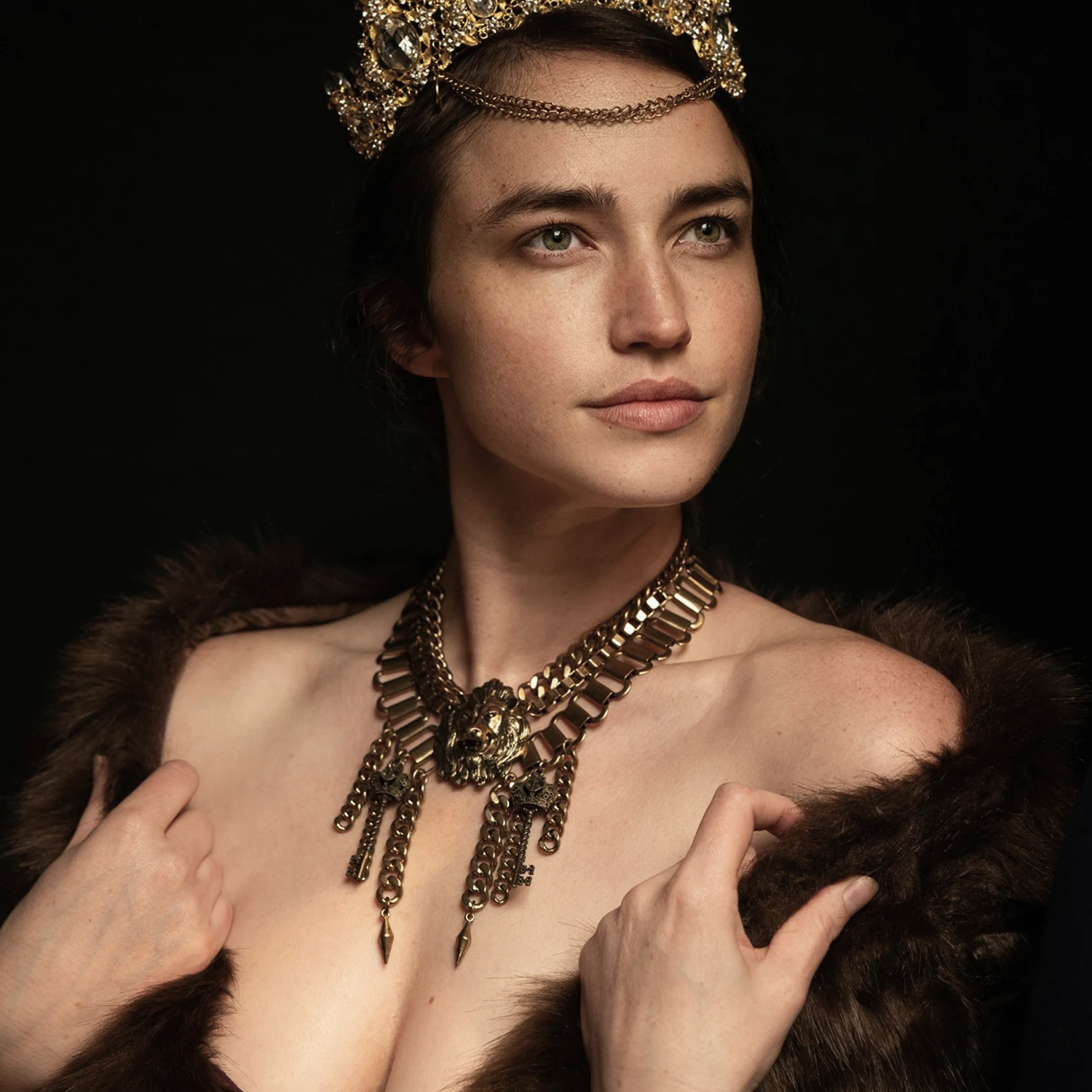 Desert moonlight forged into ancient runes, Silk Road constellations grace your neck. Geometric whispers of mystic realms, molten gold sways like temple bells, awakening civilizations in every gleam.